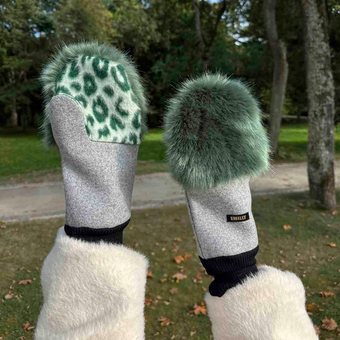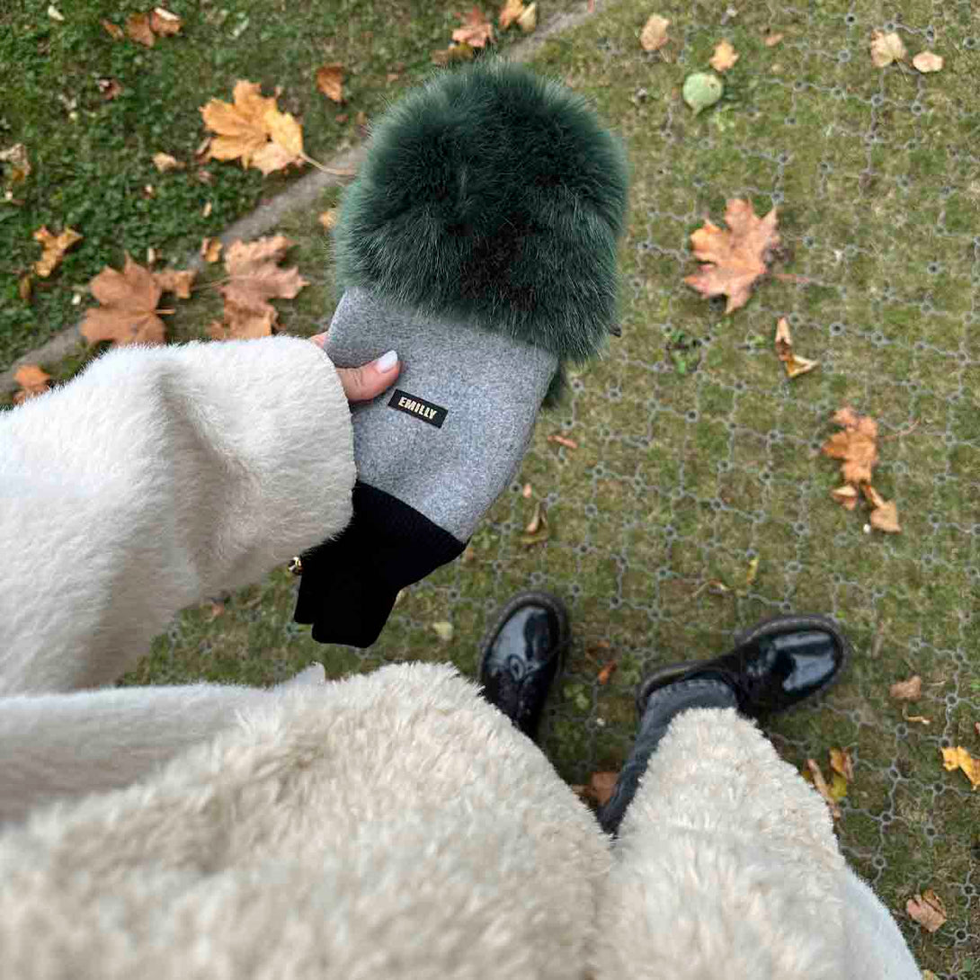 Atraskite prabangą ir jaukumą su EMILLY rankų darbo kumštinėmis pirštinėmis, pagamintomis iš aukščiausios kokybės medžiagų: dirbtinio kailio, kašmyro ir vilnos. Šios oversize, unisex dydžio pirštinės suteiks universalumą ir komfortą visą žiemos sezoną.