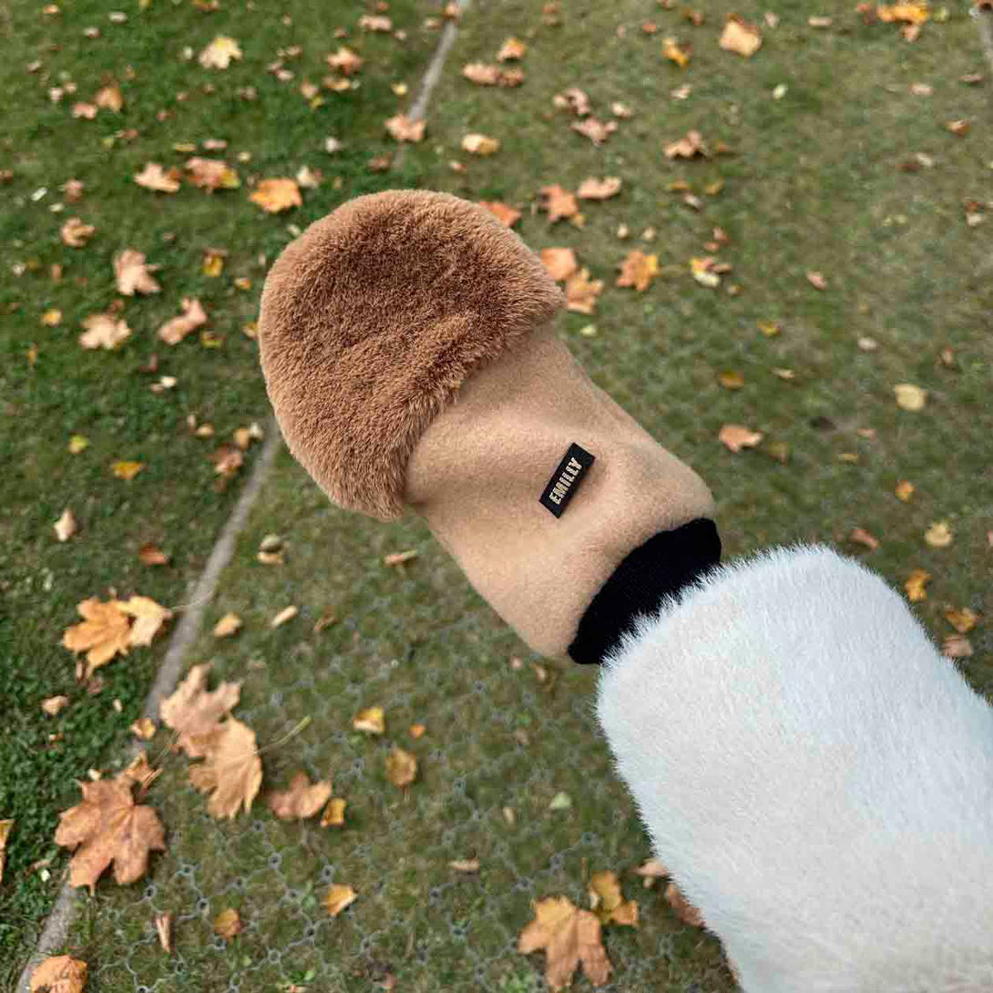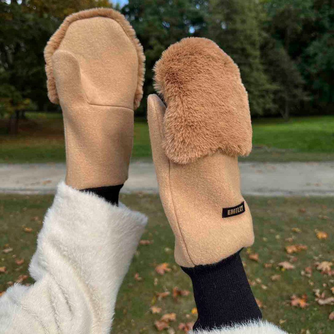 Atraskite prabangą ir jaukumą su EMILLY rankų darbo kumštinėmis pirštinėmis, pagamintomis iš aukščiausios kokybės medžiagų: dirbtinio kailio, kašmyro ir vilnos. Šios oversize, unisex dydžio pirštinės suteiks universalumą ir komfortą visą žiemos sezoną.